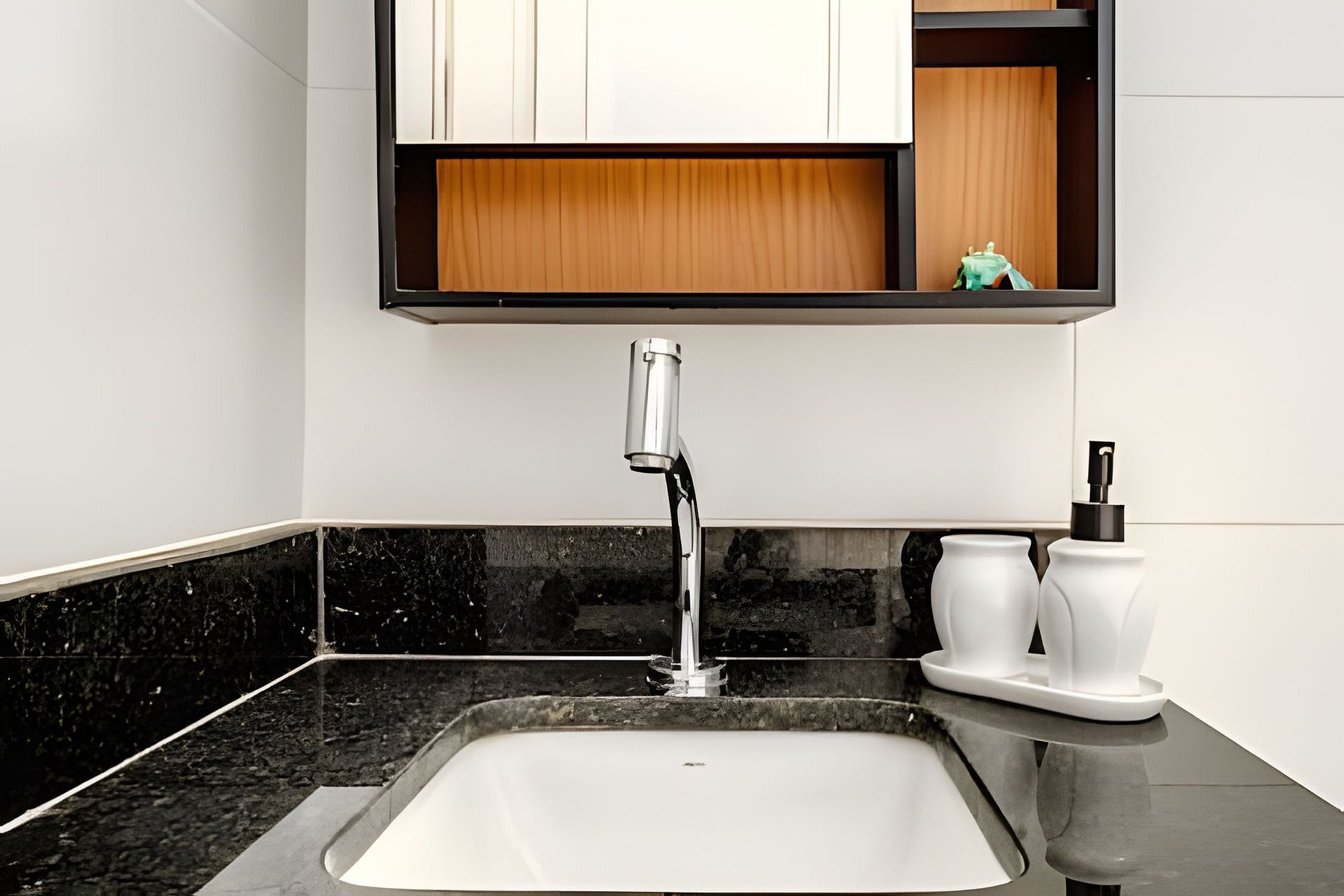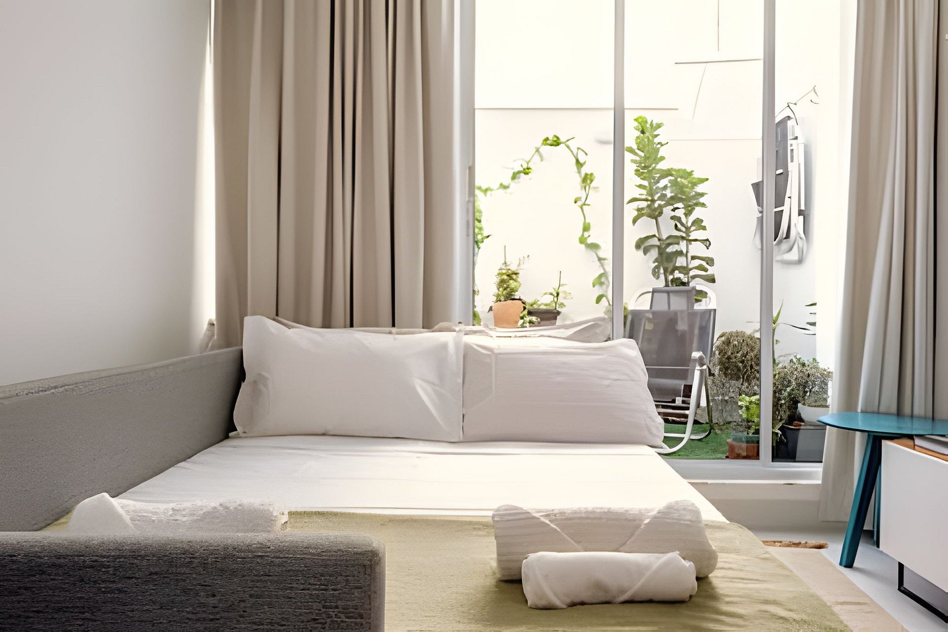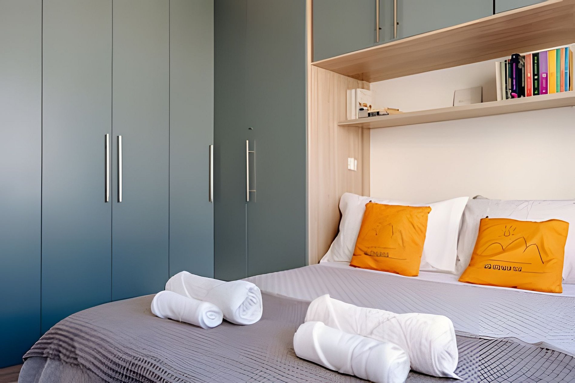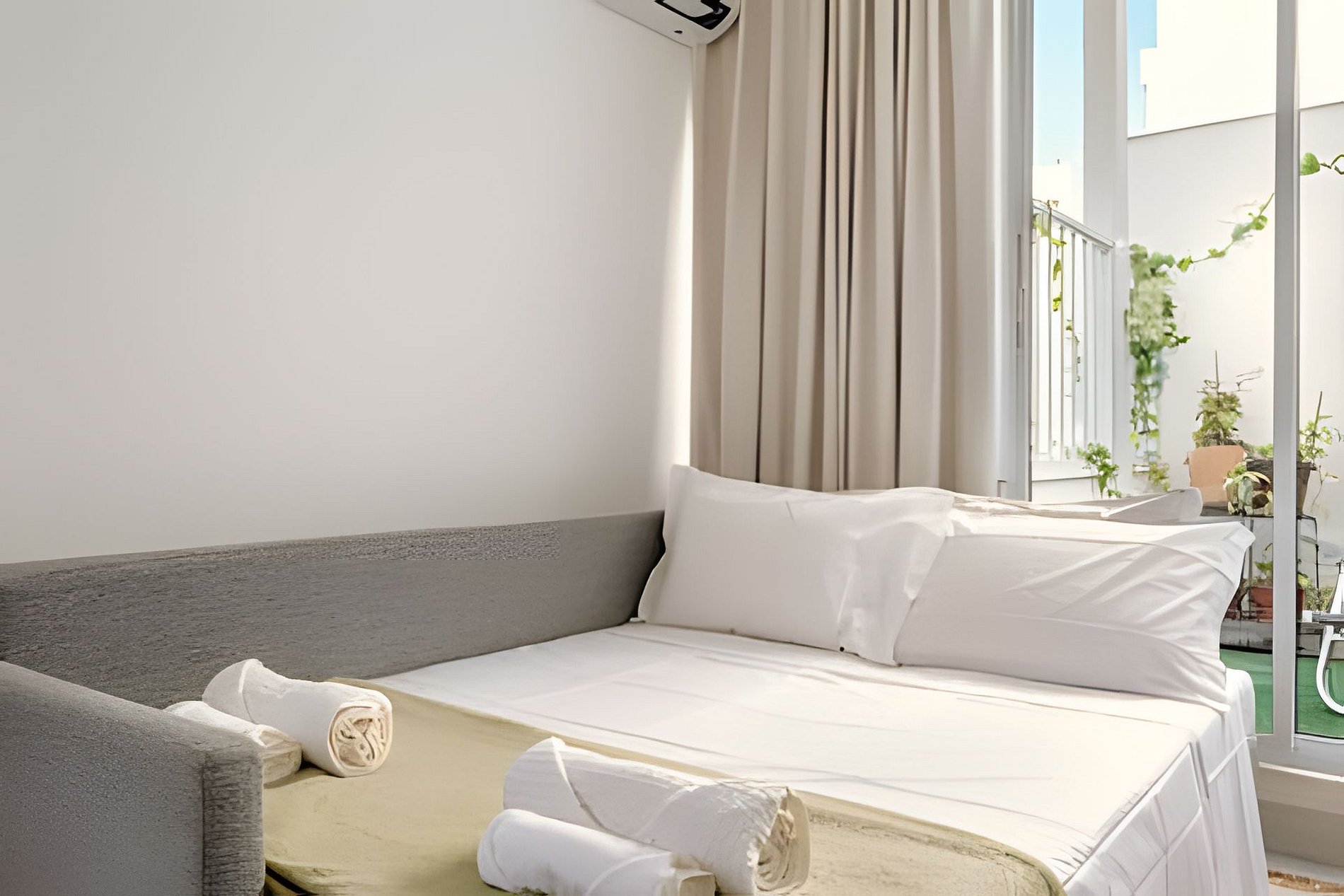 O espaço acomoda confortavelmente 4 pessoas em uma cama queen no quarto e um sofá-cama na sala. A cozinha está equipada com geladeira, cooktop, air fryer, cafeteira Nespresso, filtro de água, além de pratos, copos, panelas e demais utensílios necessários para o preparo das refeições. A área de serviço ainda dispõe de máquina de lavar e ferro de passar.